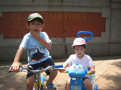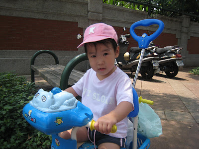 爸爸在幫哥哥照相,啊Lindsey妳是要騎去那裡?