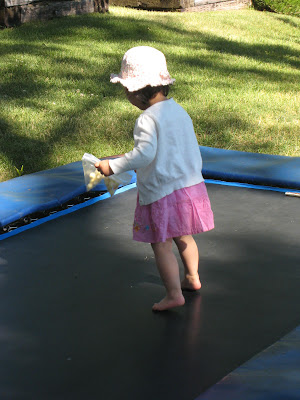 在大草地玩的很高興,Lindsey挑戰彈簧床