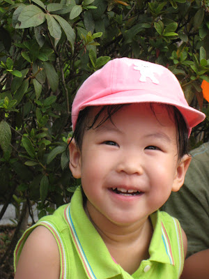 天氣真的很熱,出那麼多汗〈看帽子就知道〉,要多補充水份喔!