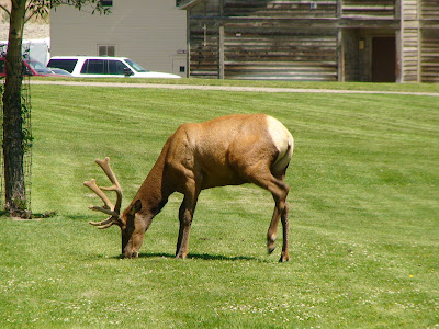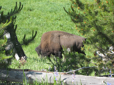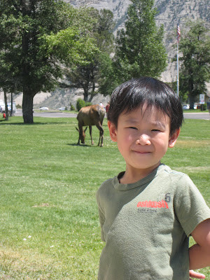 聽說黃石公園可以看到許多野生動物,Lindsey和Easton滿心期待。一進園,就看到有人聚集在路邊。哇!真的有動物耶!
