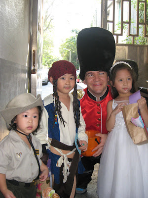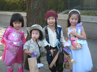 表演都結束了,登場的就是最重要的trick-or-treat。Lindsey因為要睡午覺,就沒有來看Easton的表演,倒是剛好趕上trick-or-treat的時間。