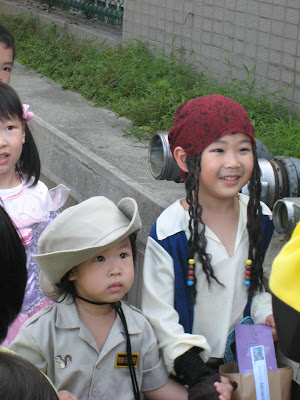 自我介紹完在後面等其他同學,爸爸覺得這個海盜真的好可愛喔