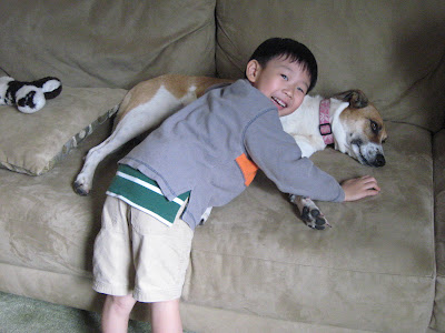 在家裡,跟在台灣的時候一樣,看卡通嚇的半死,沒有枕頭抱只好互相抱