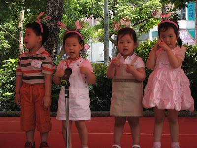 第二段的表演,是各個班級的表演,Lindsey的caterpillar班是第一個表演的。大家在旁邊準備上台