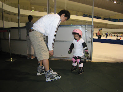 Lindsey很勇敢,本來爸爸抱定得要冒著老骨頭摔壞的危險下去陪Lindsey溜,沒想到完全不需要,Lindsey自己一個人跟教練上完一小時的課,而且一下課馬上說下次還要來溜,真的很棒喔!!