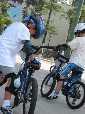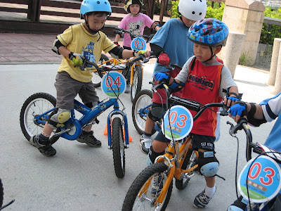 有方法的學習果然事半功倍,不像爸爸小時候是不明不白的摔會騎車。隔週,老師們就帶大家騎出去外面的腳踏車步道囉!