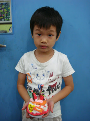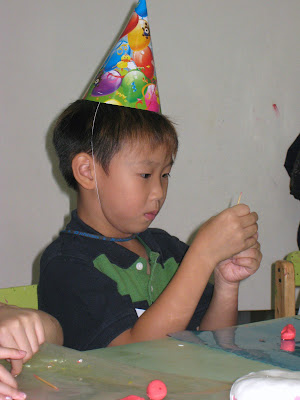 Easton在大孩子組也選了自己要做的蛋糕,認真用黏土做配料中