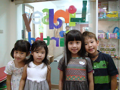 大家都很準時的到喔!到齊了排隊進故事屋聽故事。